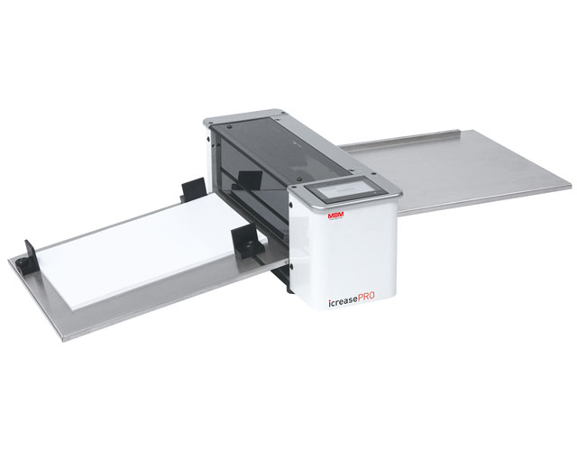 Custom set-up of up to 12 creases per page. Rotary actuated, matrix compression crease system produces a sharp crease without cracking. 2 creasing dies (standard and wide). 13 inch in-feed. Side guide register ensures accurate feed. Quiet operation.
