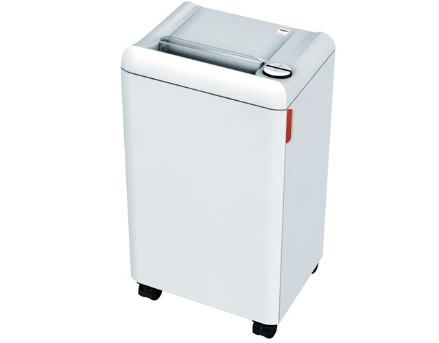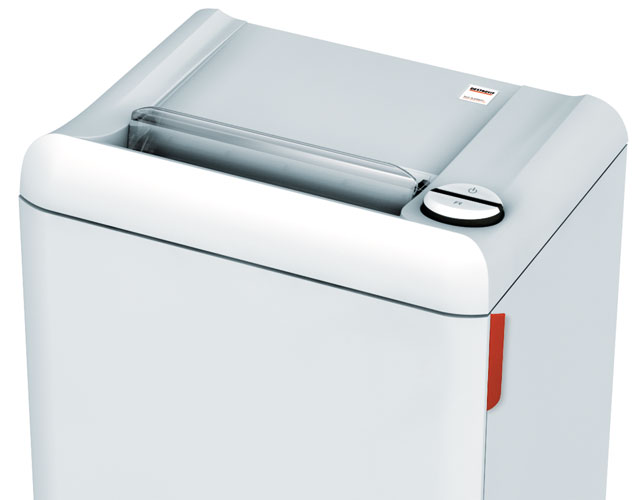 Comprehensive SPS safety package: Easy Switch control element uses illuminated color codes and symbols to indicate operational status and functions as an emergency stop switch; patented, electronically controlled, transparent safety shield in the feed opening; automatic power cut-off when cabinet is opened or shred bin is full; automatic reverse and power cut-off when overfed; double protection against overheating; Zero Energy Consumption sleep mode cuts off power supply after 30 minutes of inactivity.