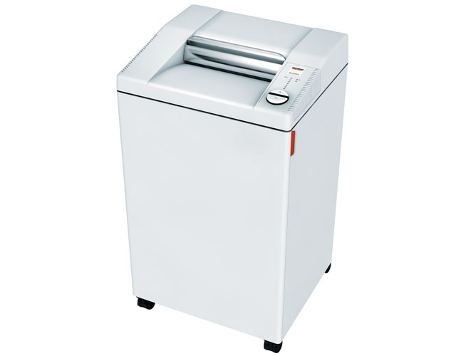 Automatic start and stop controlled by photo cell. Patented Electronic Capacity Control (ECC) indicator prevents jams by monitoring sheet capacity levels during operation. High quality, hardened steel cutting shafts take staples, paper clips, and credit cards (strip-cut and 4 x 40 cross-cut models take CDs / DVDs).
