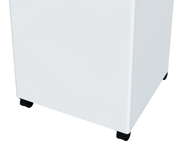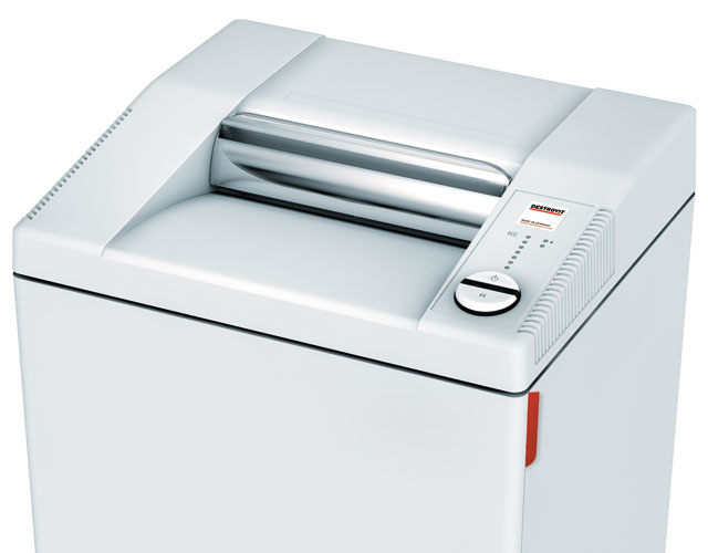 Comprehensive SPS safety package: Easy Switch control element uses illuminated color codes and symbols to indicate operational status and functions as an emergency stop switch; patented, electronically controlled, transparent safety shield in the feed opening; automatic power cut-off when cabinet is opened or shred bin is full; automatic reverse and power cut-off when overfed; double protection against overheating; Zero Energy Consumption sleep mode cuts off power supply after 30 minutes of inactivity.