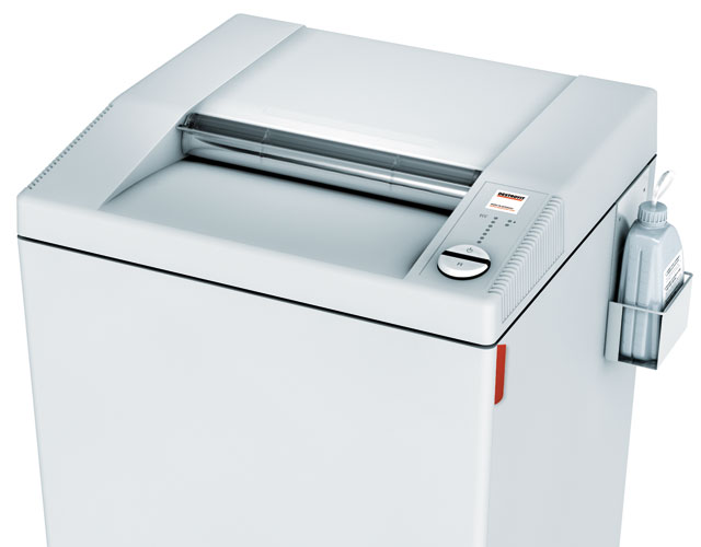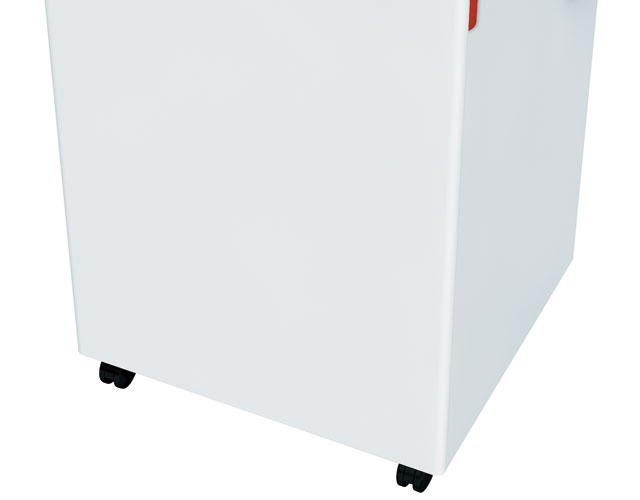Comprehensive SPS safety package: Easy Switch control element uses illuminated color codes and symbols to indicate operational status and functions as an emergency stop switch; patented, electronically controlled, transparent safety shield in the feed opening; automatic power cut-off when cabinet is opened or shred bin is full; automatic reverse and power cut-off when overfed; double protection against overheating; Zero Energy Consumption sleep mode cuts off power supply after 30 minutes of inactivity.