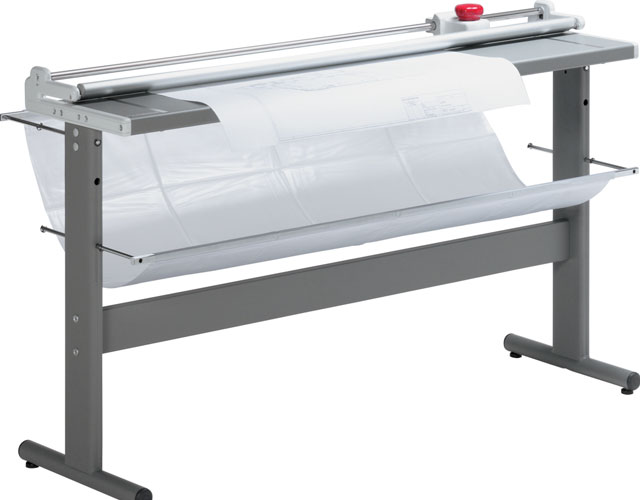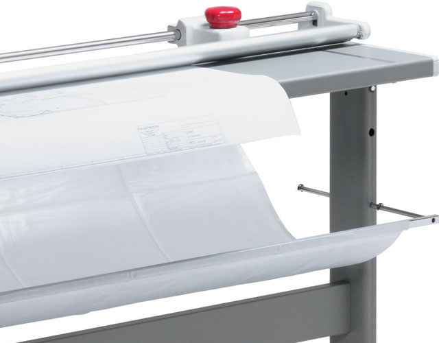 The Kutrimmer 0135 has an independent automatic clamp with transparent bar, precision side guides, all metal construction, paper collection tray, and a clear safety guard to protect the operator by covering the blade in any position. The Kutrimmer is perfect for cutting and trimming blueprints, drawings, posters, photos, and large format prints. Manufactured in Germany by MBM's parent company, IDEAL, Kutrimmer paper trimmers are built to the same exacting tolerances as Triumph cutters.