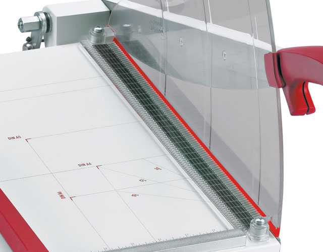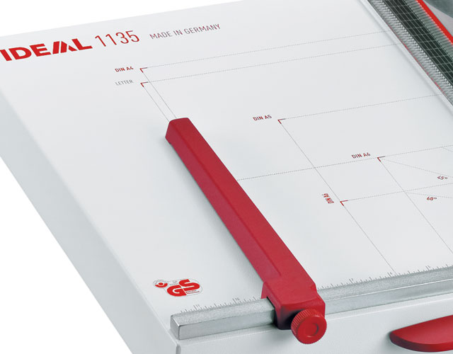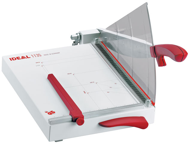 The overall table size for the 1135 is 15" x 12". The Kutrimmer 1135 has an automatic clamp, lockable back gauge, precision side guides, all metal construction and a clear safety guard to protect the operator by covering the blade in any position. Manufactured in Germany by MBM's parent company, IDEAL, Kutrimmer paper trimmers are built to the same exacting tolerances as Triumph cutters.