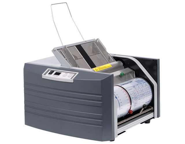 The MBM-ES 5000 Pressure sealer quickly creates single-sheet self mailers without the need for an envelopes. Maximum monthly volume is 50,000. The feed tray holds up to 150 forms. It can be used for paychecks, invoices, tax forms (W2, 1099, etc.), medical reports, and ID cards among others. It is a safe and secure method for mailing sensitive documents.
